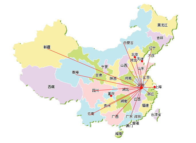 公司销售网络:安徽省各地市、河南、上海、北京、江苏南京、浙江杭州、山东济南、江西、湖北、湖南、辽宁、贵州、广东、内蒙、四川、新疆、青海、云南、广西