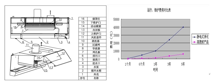 7、水淋式油烟净化器的主控系统,电机,水泵,网带除垢泵等主要部件易采用进口材料。
